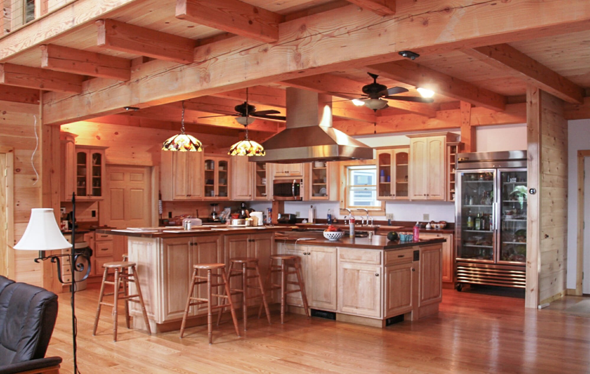 I love how we were able to solve one of the engineering issues for the loads by incorporating a steel I-beam into our timber frame. That’s our design and engineering team–creative solutions!