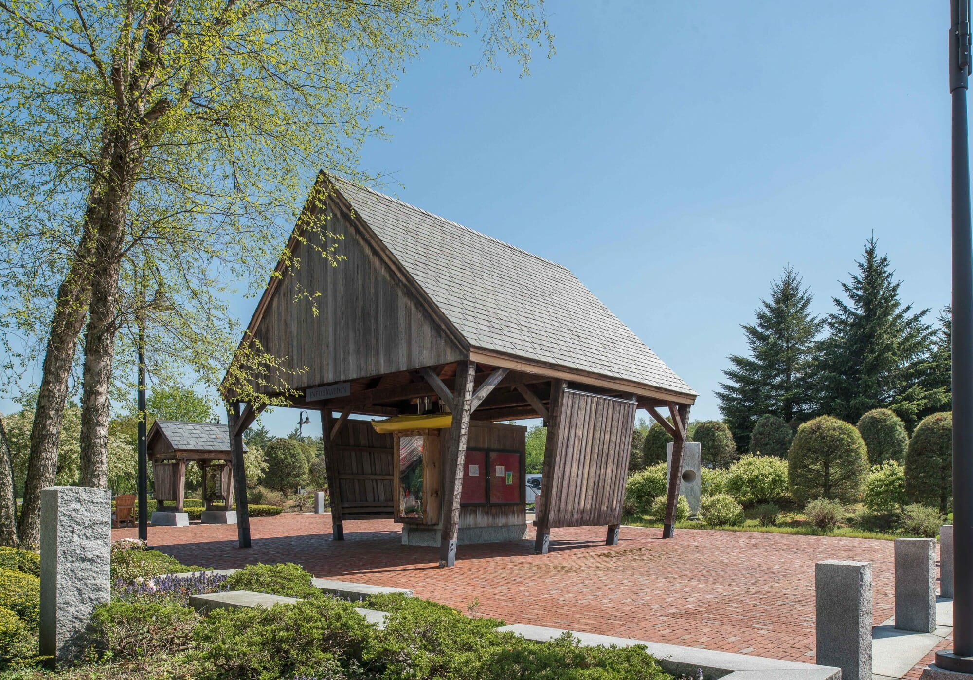 The Vermont Veterans Chapel is in Randolph, VT. Vermont Timber Works constructed a timber frame with an open-air design and space for sliding glass doors for the chapel.
