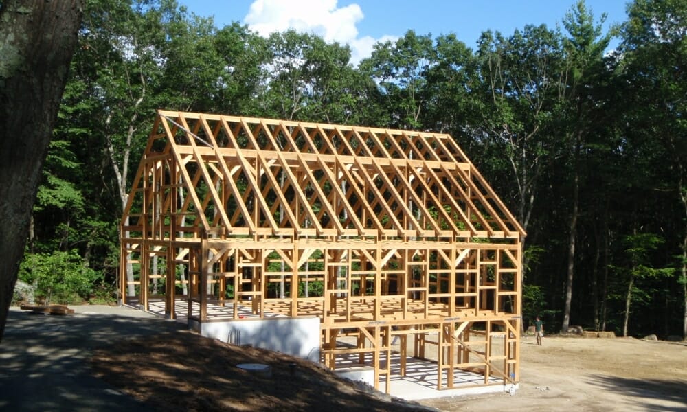 I remember the first timber frame we built for ourselves which started in late summer. When we got in towards winter and light the wood stove, the timbers started an accelerated drying pattern with cracking and popping that would wake you in the night!