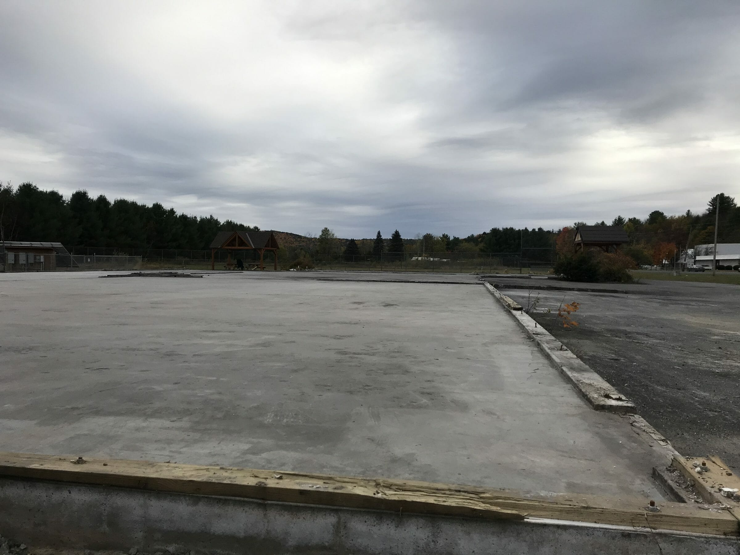On the site where Vermont Timber Works once stood, the old building has been demolished and the rubble removed. The water pipes for the new sprinkler system have been laid, as well as the underground wires for electricity. Construction on the rebuilt Vermont Timber Works will begin later this month. The building will be prefabricated by LaValley Building Supply.