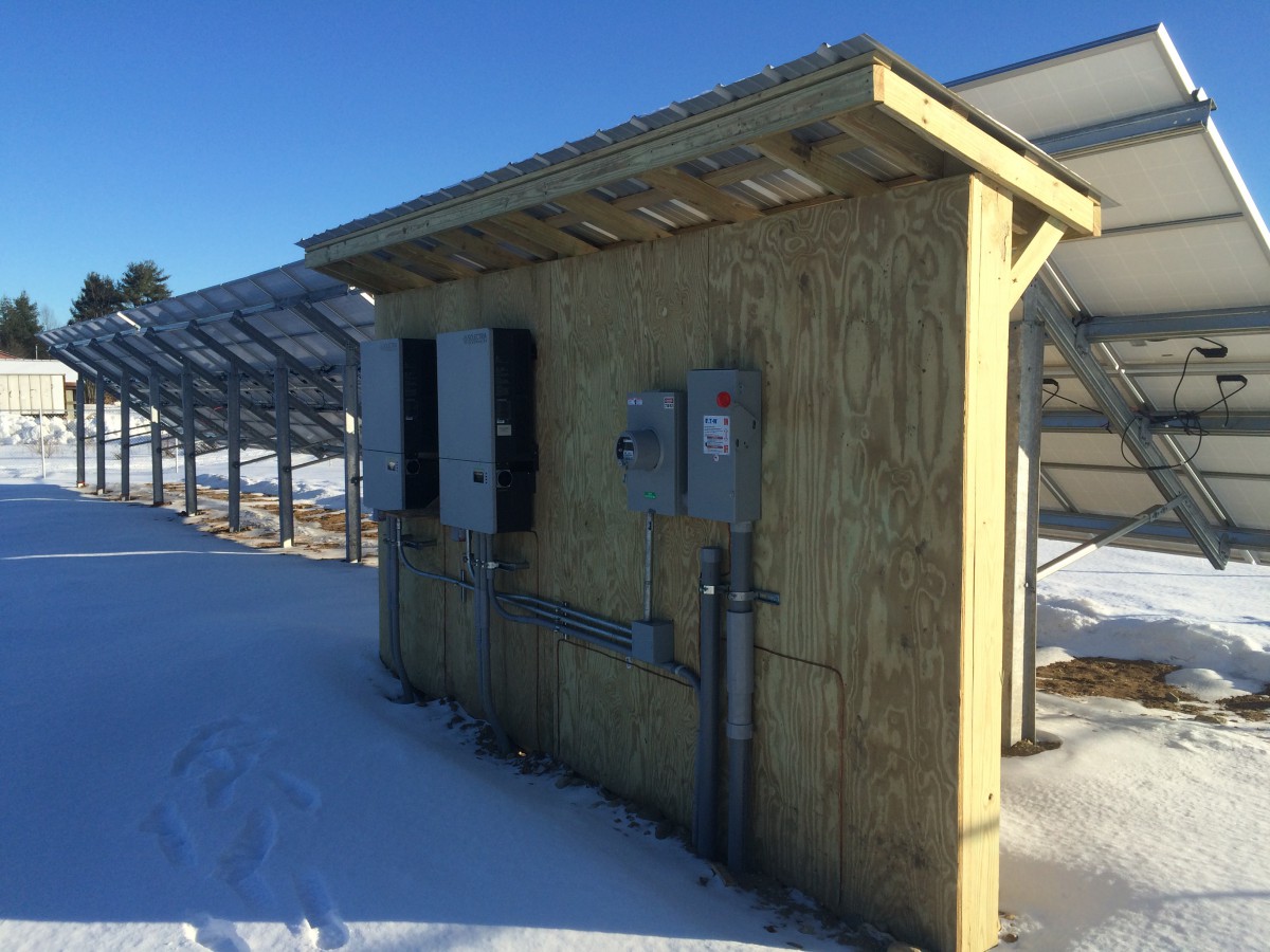 We have two 28kw inverters that convert DC power from the solar panels to AC power that is sent to the grid. A smart meter constantly records the power we are sending to the grid. Real-time reports are sent to an online monitoring system. The array is “Net-Metered,” so all the power it produces goes into the power grid and we draw electricity from the grid as we need it. When we overproduce energy for the year, the extra green energy is donated to charities in the form of credits from Green Mountain Power.