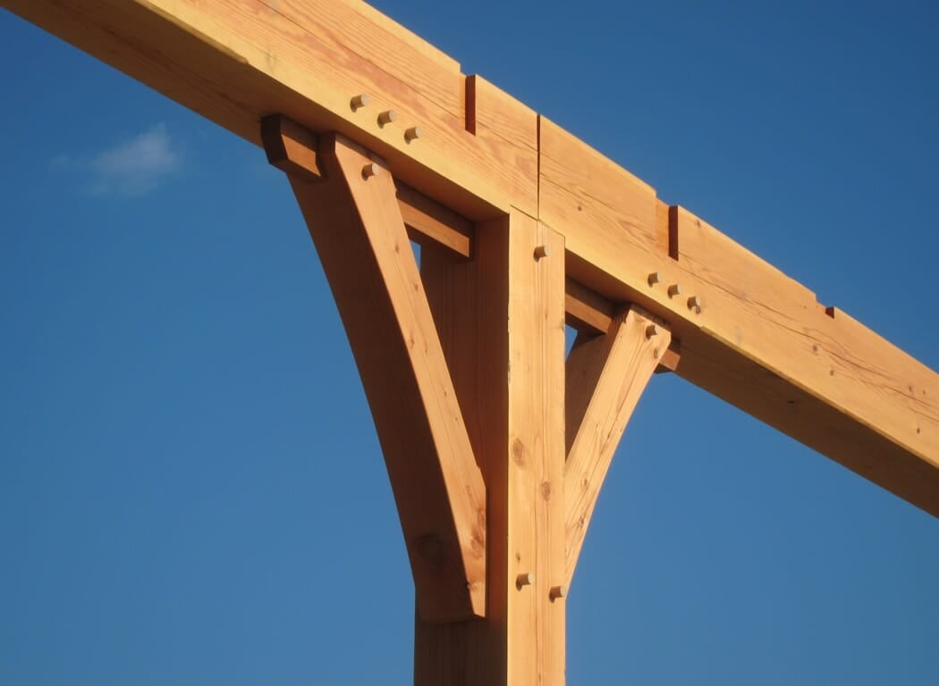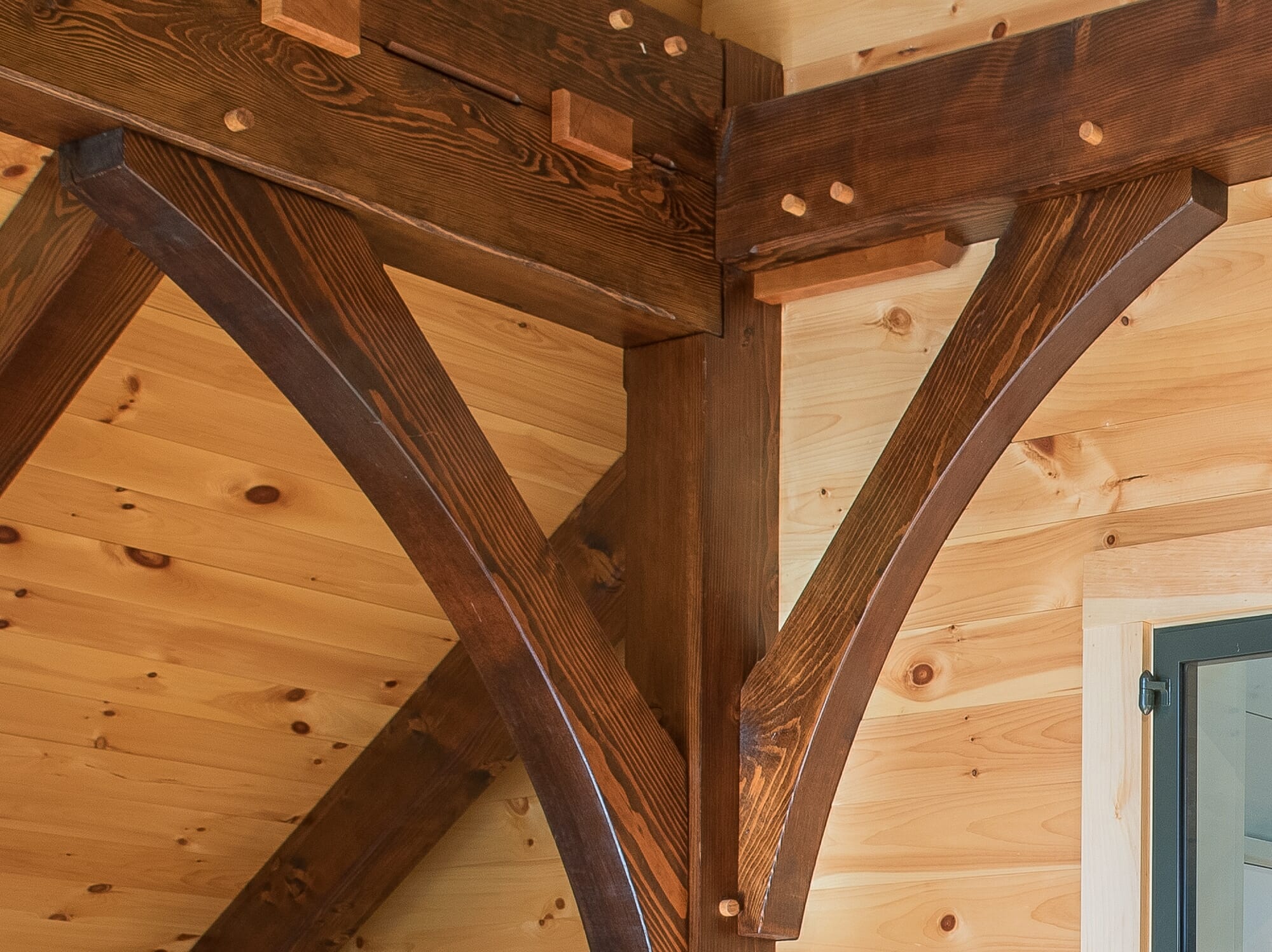 When using traditional joinery to make connections in a Timber Frame, the pegs are there to stabilize the connections and keep them secure.