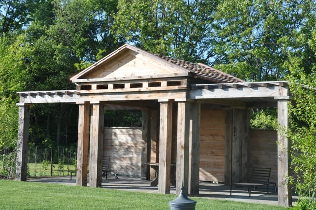 We can weather beams in our yard for use in indoor structures like great rooms, kitchens, and foyers. Or if you’re building an outdoor structure, and you don’t want to wait a few months for the wood to weather with us, we can provide you with new beams that will weather naturally over time and give you the same appearance. Look at this outdoor Pool house that was allowed to weather in the client’s backyard.