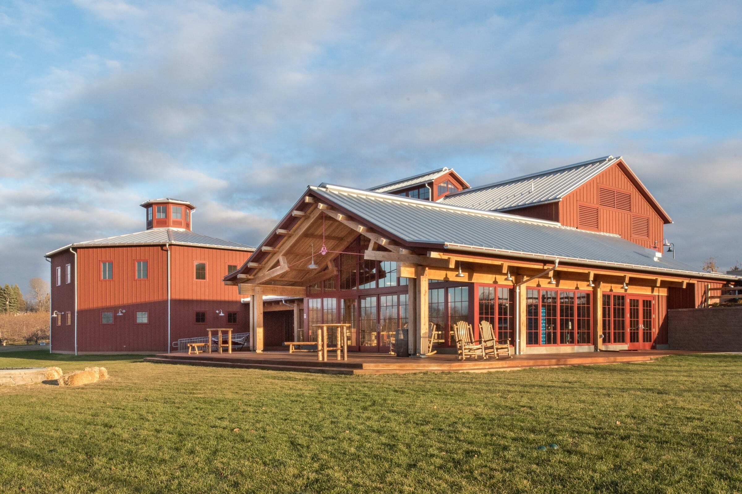 Cider brewing is an artisan craft that is done with skill, experimentation, traditional techniques, and joy. So it makes sense to have the process take place in a timber frame building.