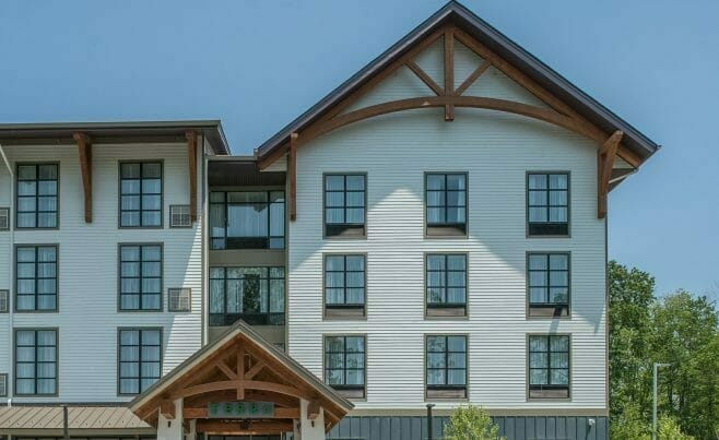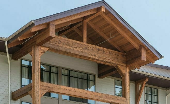 Vermont Timber Works constructed trusses and additional timber structures for this hotel in Connecticut.