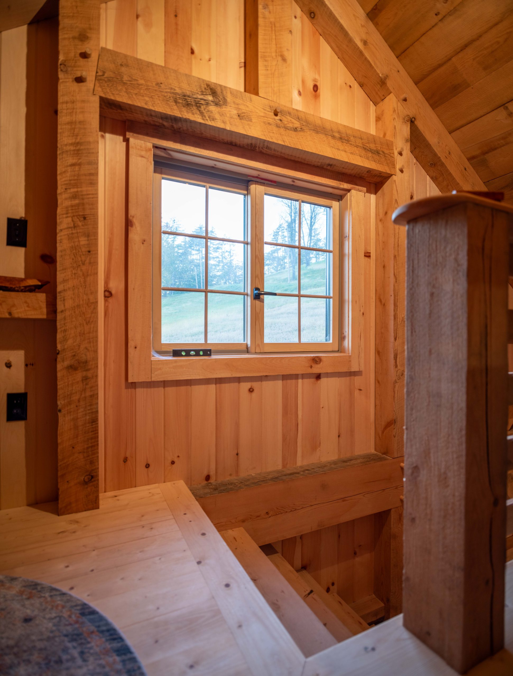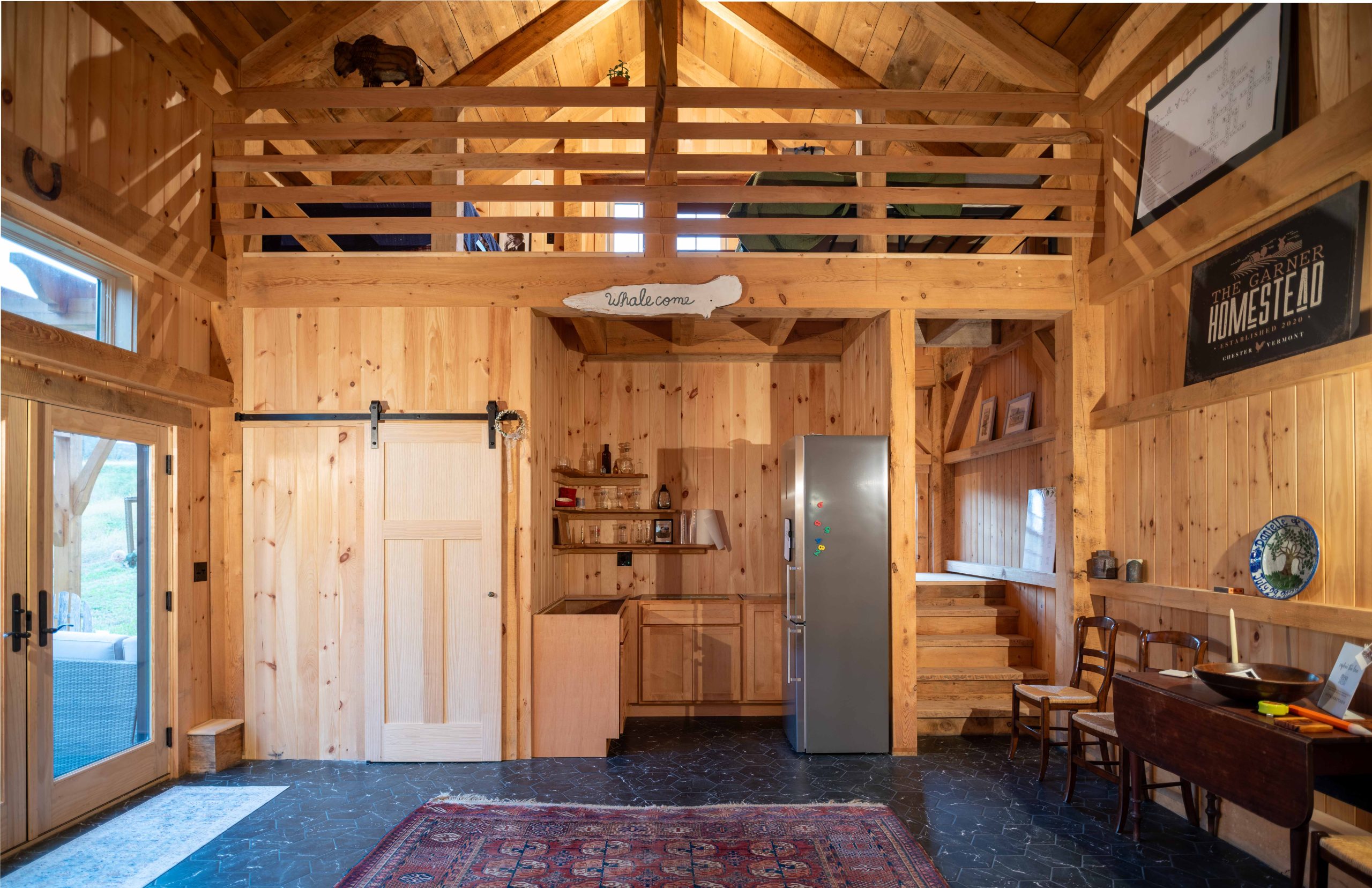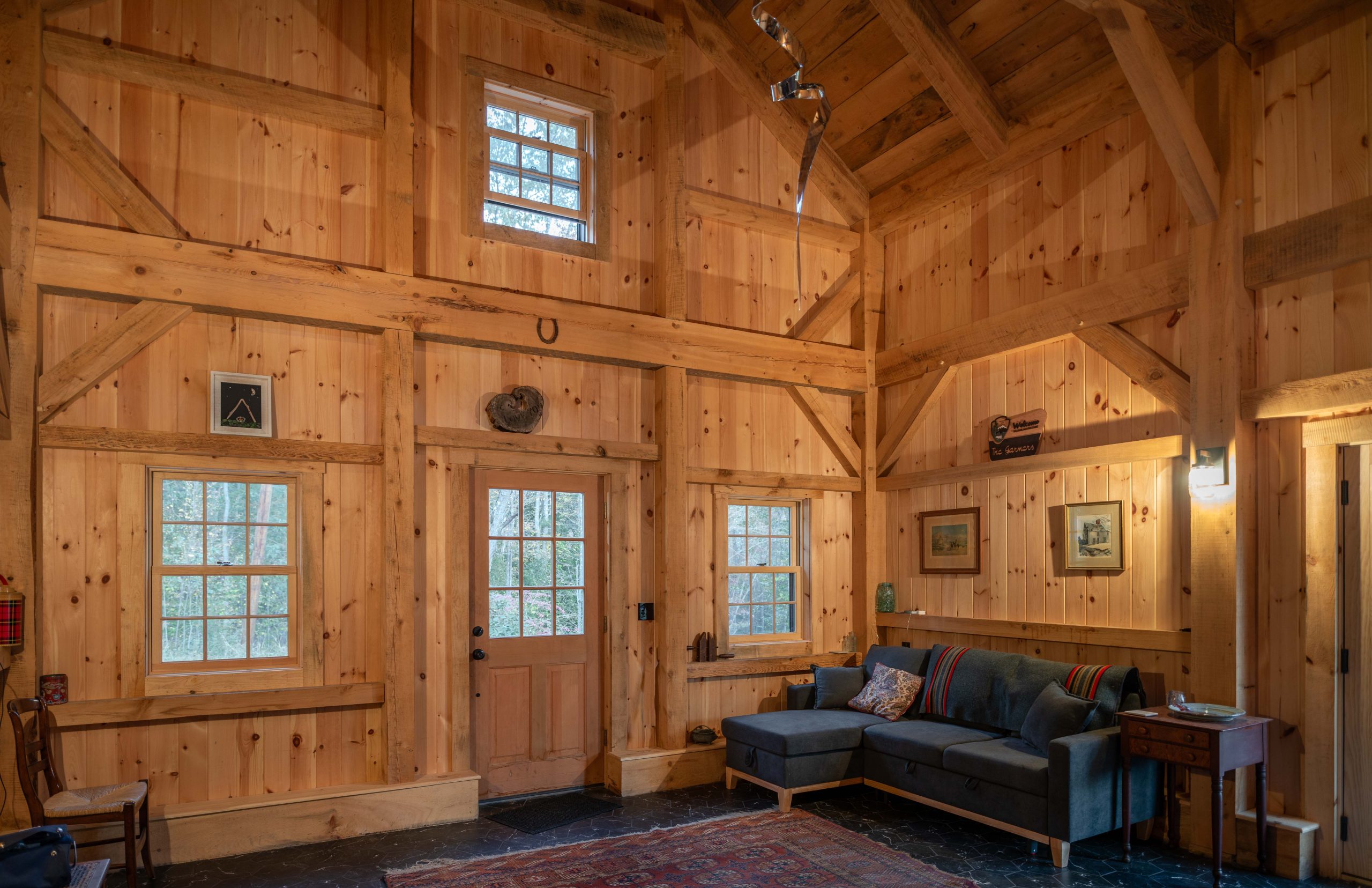 The interior of the guest barn features wood siding which brings a warm and cozy feeling to the interior.